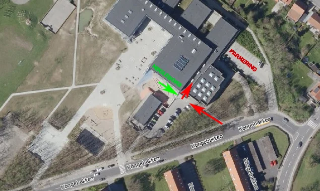 Du skal selv medbringe volleybold. Du skal selv tage net op og ned i bookingtiden. Nettet er placeret ved indgangen til festsalen fra kælderen.